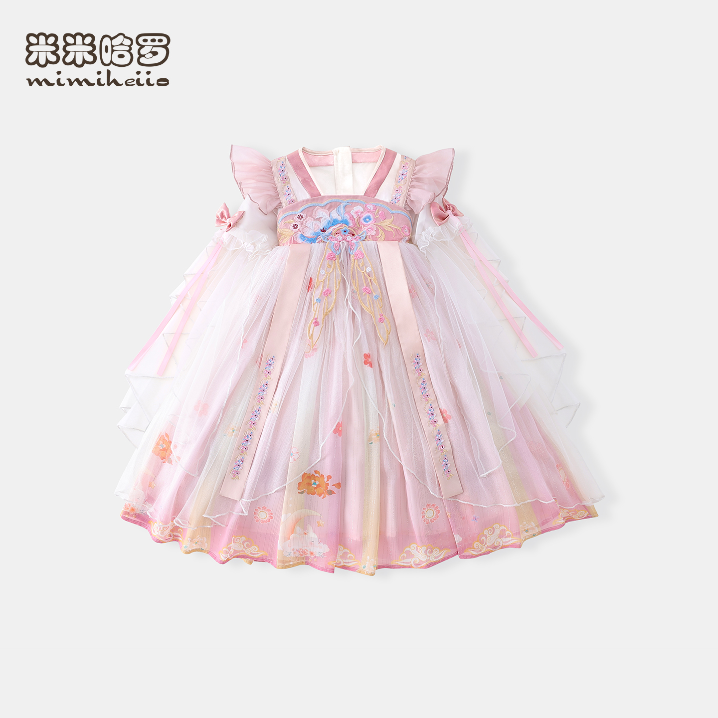 新款 粉蓝衣橱2025秋装 BBLLUUEE 刺绣腰带气质连衣裙 东方松韵