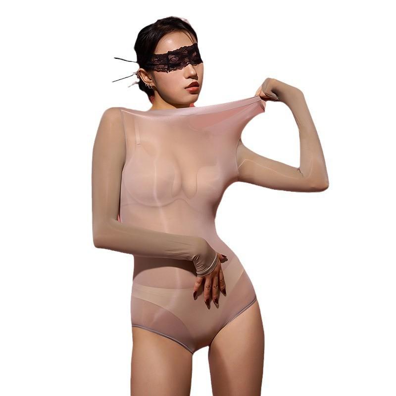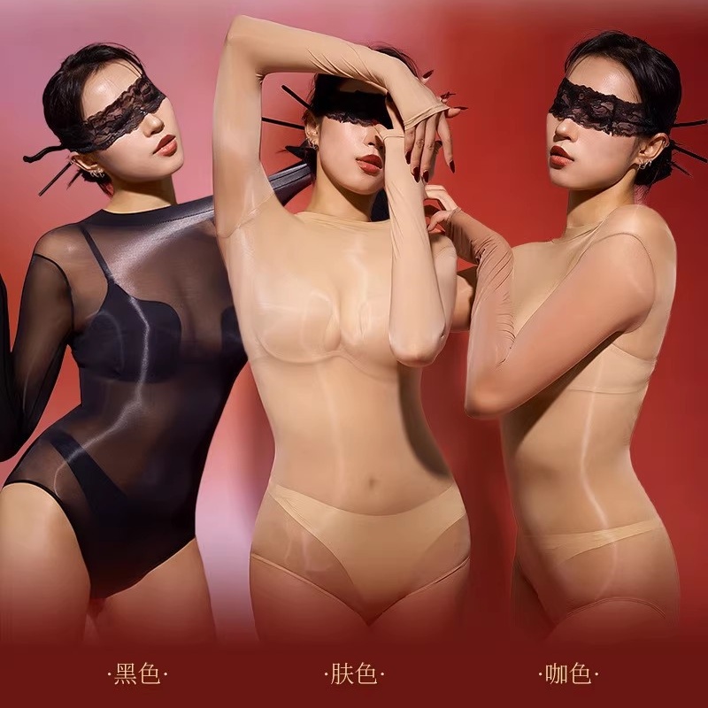 涞觅肤无缝油亮丝滑吊带高叉连体衣女性感紧身衣情调丝袜套装 大码
