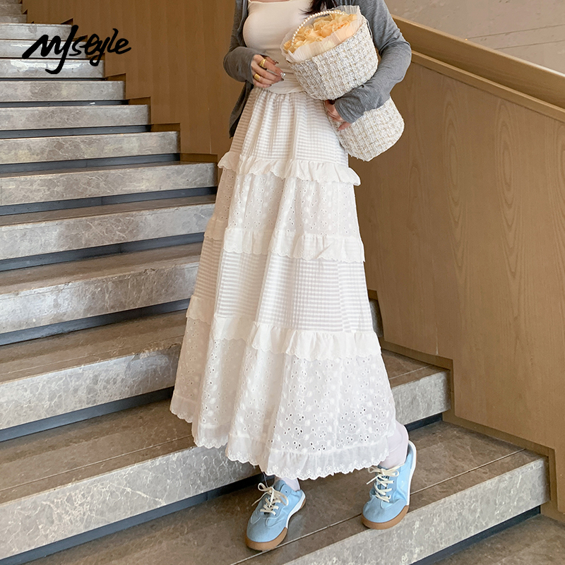 甜美淑女白色A字仙女裙MOFAN摩凡2025秋新款 松紧高腰显瘦半身裙