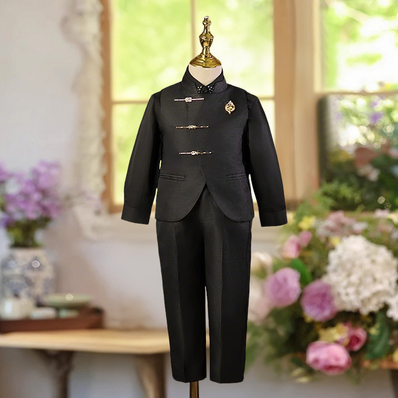 男童帅气中国风小男孩西服高端礼服主持人国风中山装 儿童西装 套装