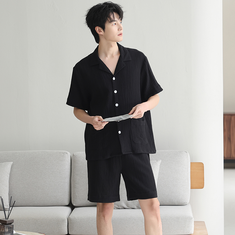 可外穿全棉家居服套装 短袖 梭织纯棉2025新款 婴儿棉纱布睡衣男夏季