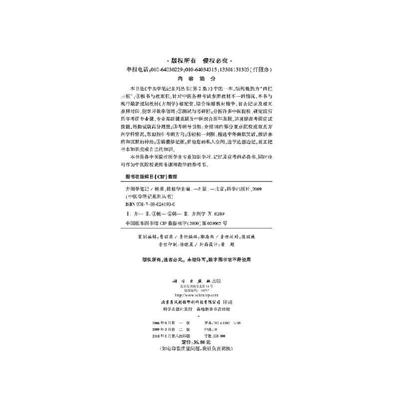 第2版 书籍 正版 方剂学 现货正版 方剂学笔记 相配套 韩旭华 杨勇韩旭华杨勇 社 主编 科学出版 本书与现行新规划教材