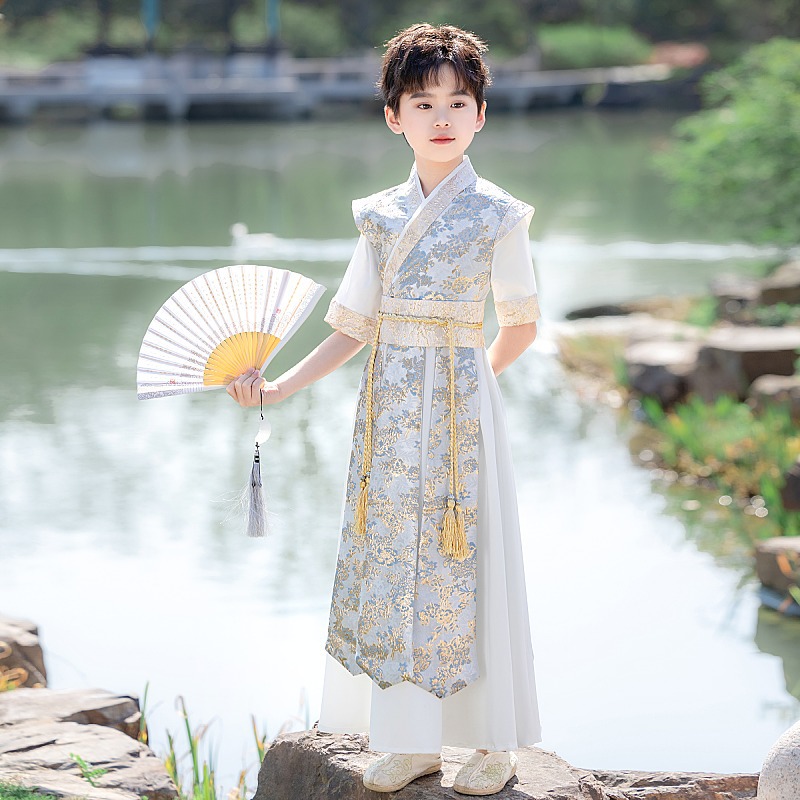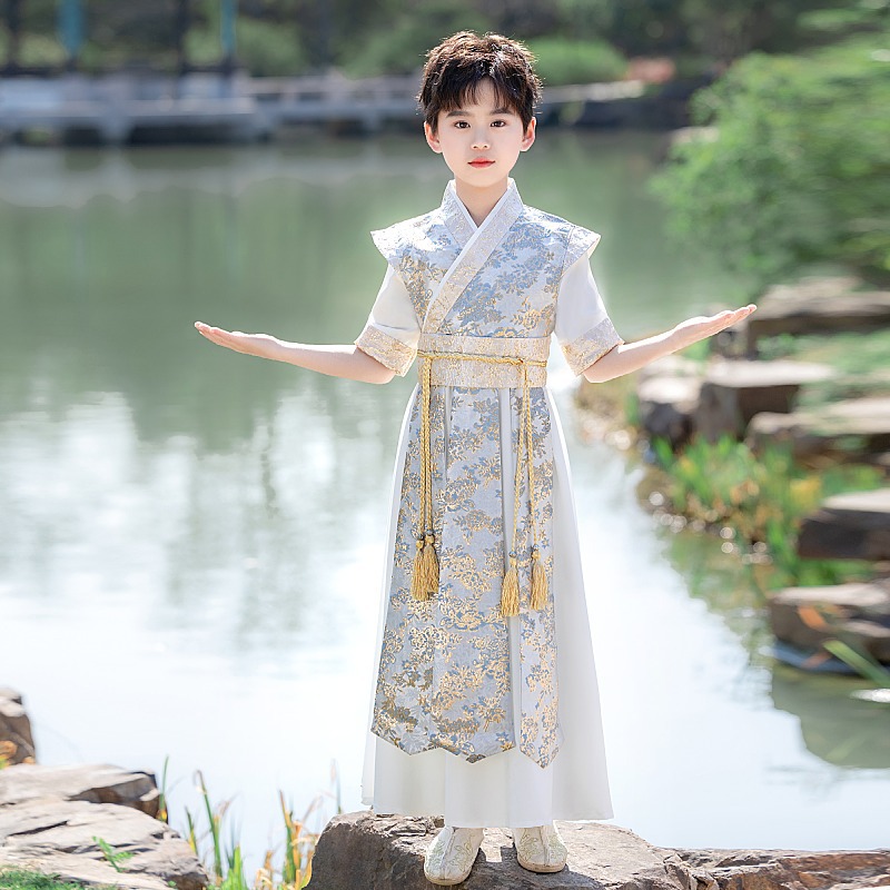 演出服2025新款 男孩古装 小少爷古风国学 短袖 儿童汉服男童夏秋薄款