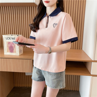 韩版 2025新款 宽松假两件百搭上衣 t恤女夏季 小个子polo领正肩短袖