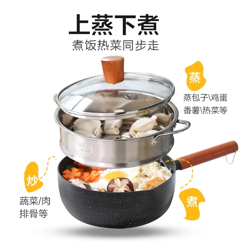 日本日式 雪平锅泡面锅煮面锅一人用食麦饭石家用不粘锅小奶锅宝宝