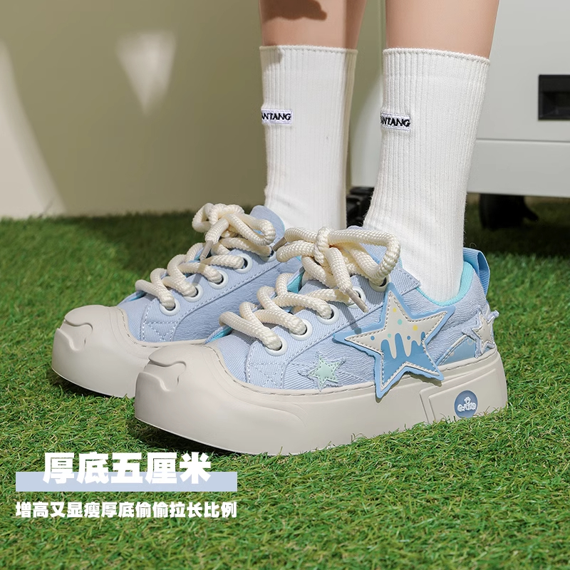 增高帮老爹鞋 帆布鞋 松糕厚底半拖爆款 秋冬小白鞋 麦昆百 女2025新款