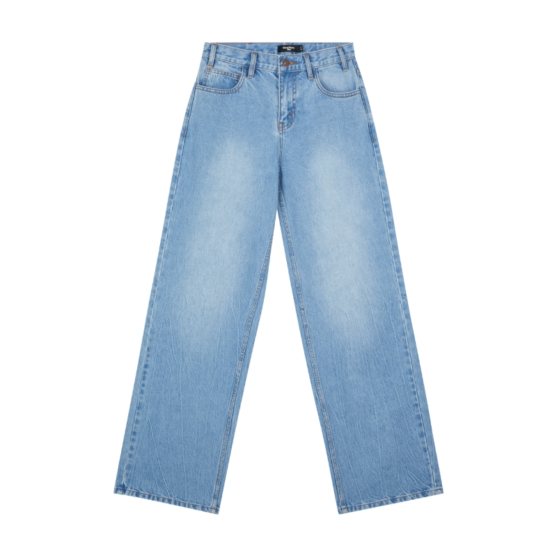 子宽松直筒阔腿长裤 cleanfit白色牛仔裤 高街潮流排扣裤 美式 男秋季