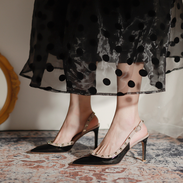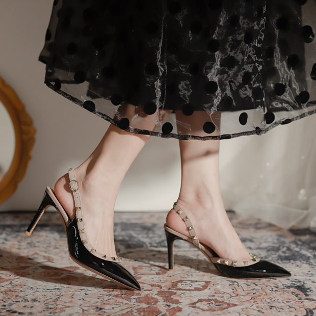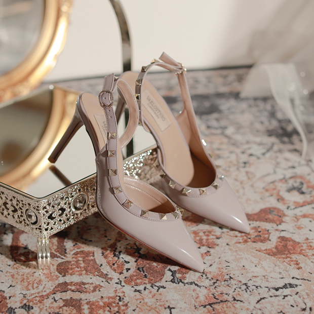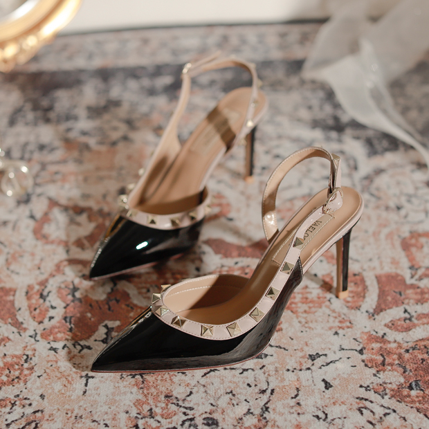 女 侧空红底裸色浅口气质单鞋 2025新款 细跟尖头漆皮名媛高跟鞋