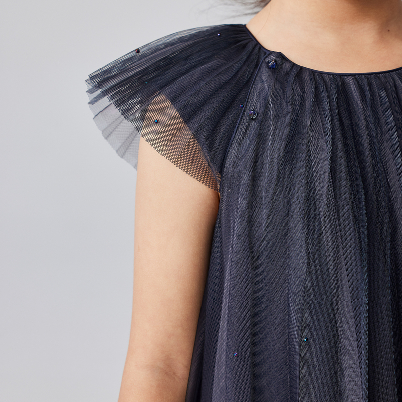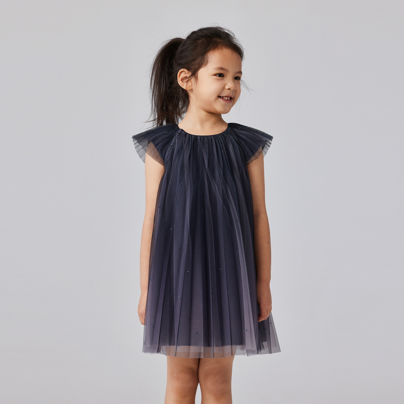 张婧仪同款 圆领连衣裙拼接假两件A1FAF2922 朝夕太平鸟三醋酸法式
