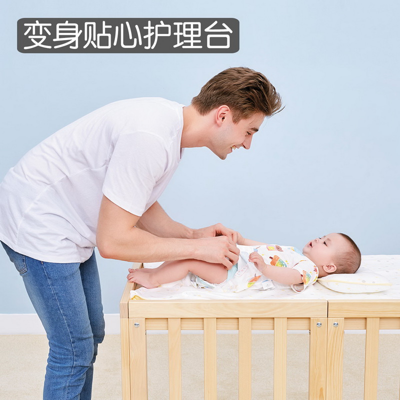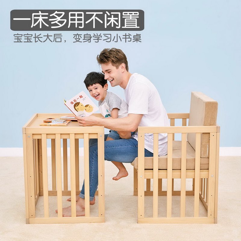 英氏婴儿床bb床新生儿多功能可移动可调节高度实木小床