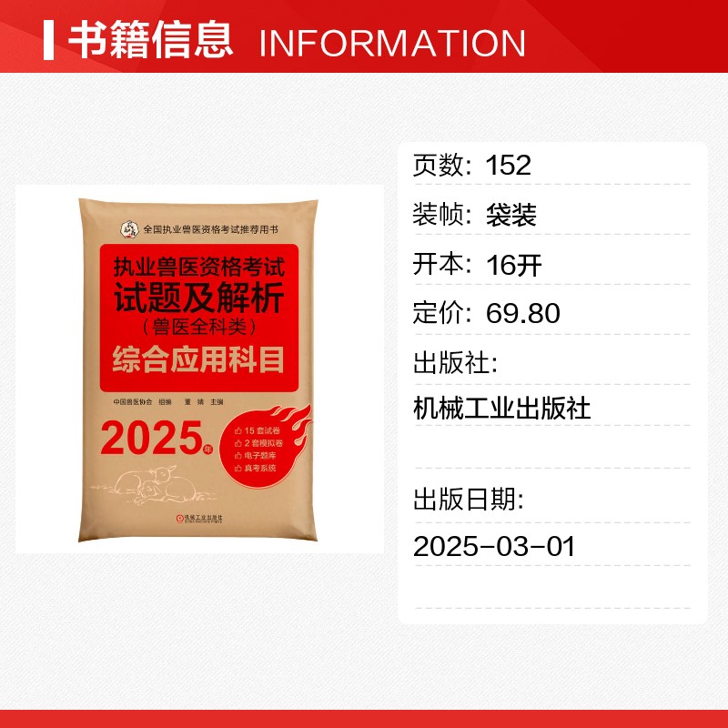 2025年 中国兽医协会;董婧 新华书店正版 兽医全科类 图书籍 养殖专业科技 综合应用科目 畜牧 执业兽医资格考试试题及解析 编