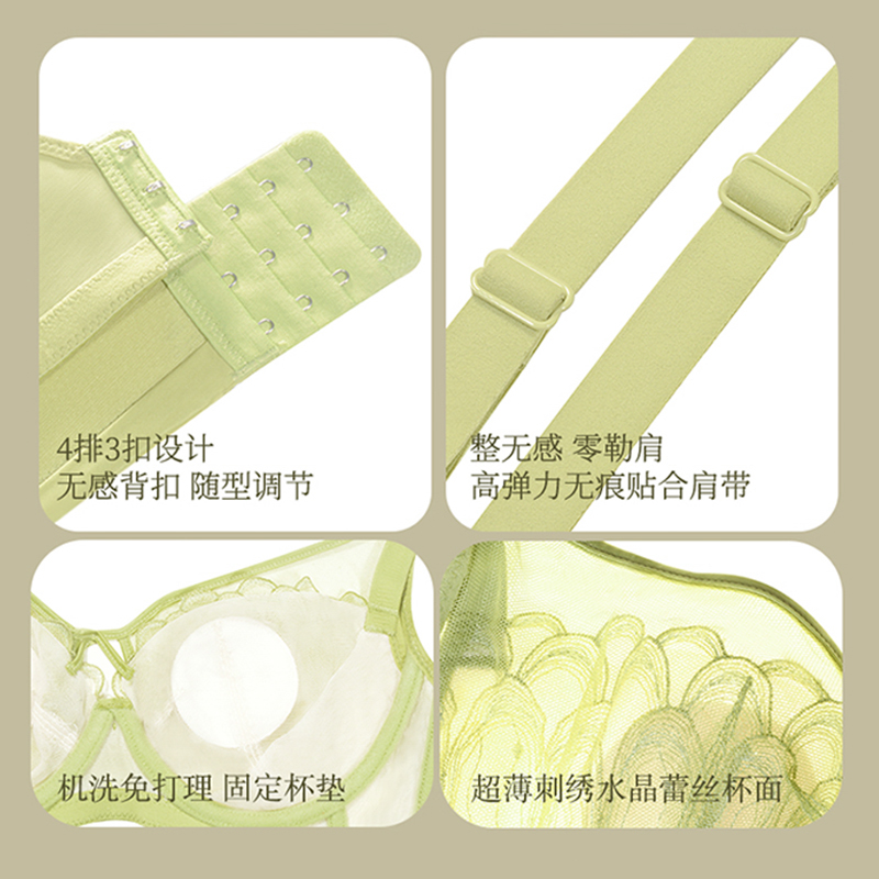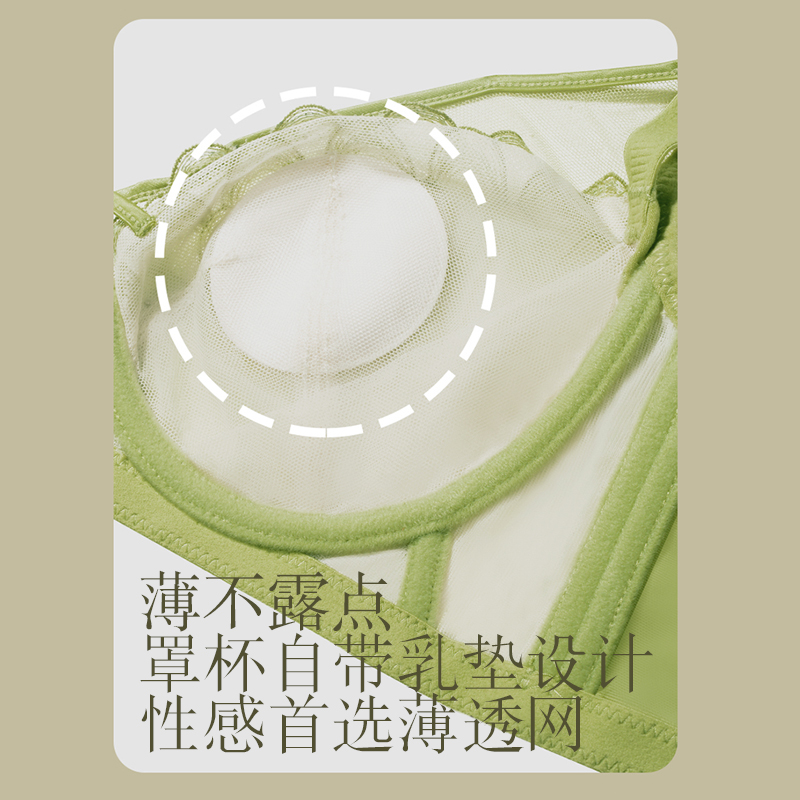 显瘦蕾丝薄款 遐大胸显小全罩杯文胸微聚拢大码 内衣女 倾城之恋