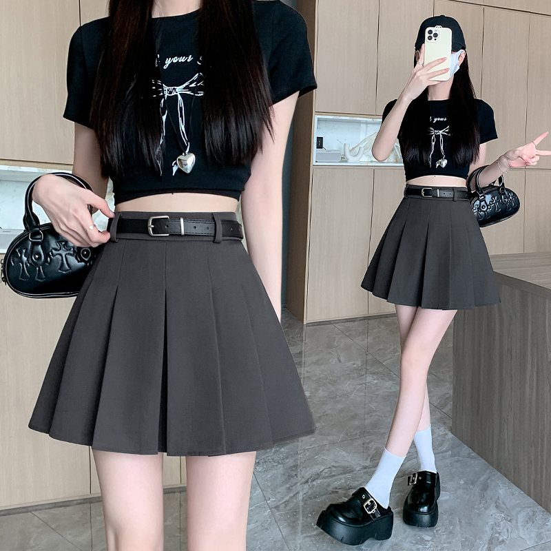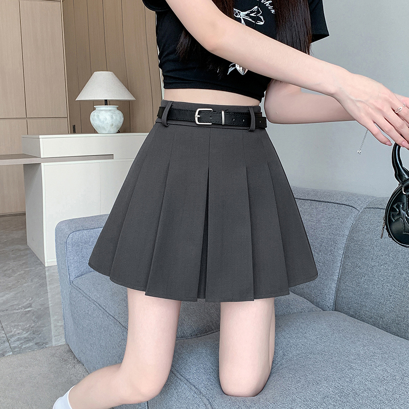 高腰显瘦a字裙百褶裙短裙 新款 omont蛋挞家 bella灰色半身裙子秋季