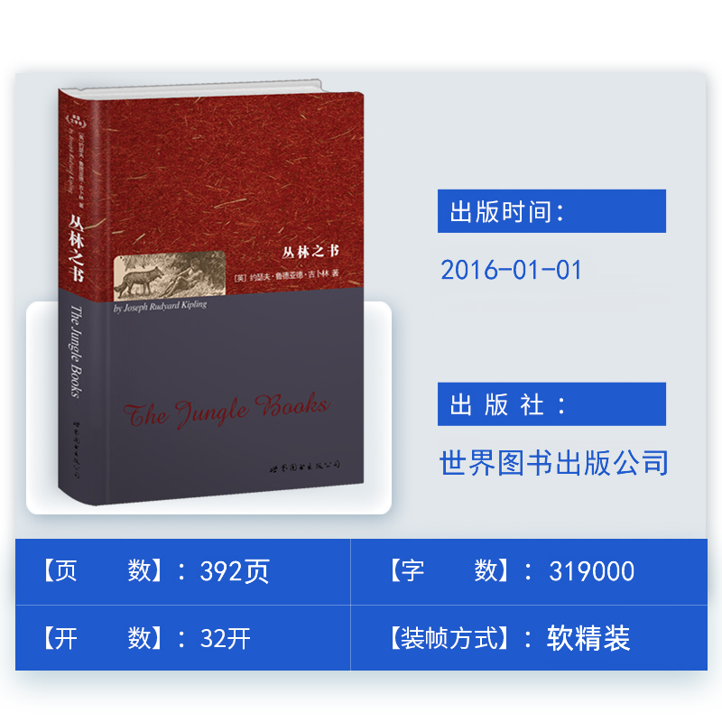 Jungle Books 鲁德亚德吉卜林诺贝尔文学奖得主代表作冒险故事经典 丛林之书 世界图书出版 The 文学名著外国儿童文学书 英文原版