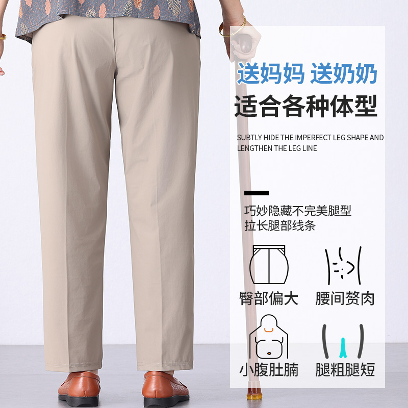 薄款 宽松老人休闲裤 奶奶裤 夏款 女 子松紧腰冰丝弹力老年人女裤 夏季
