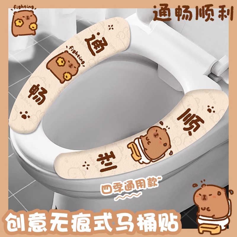 卡通马桶垫粘贴式 通用毛绒马桶圈可水洗卫生间加厚马桶贴 坐垫四季