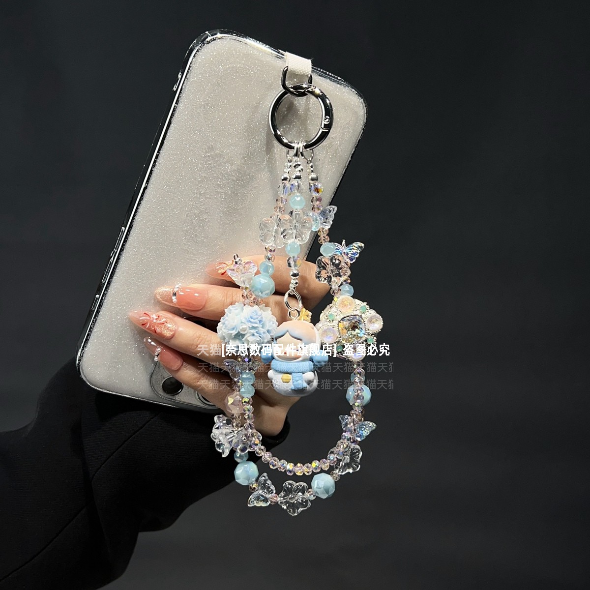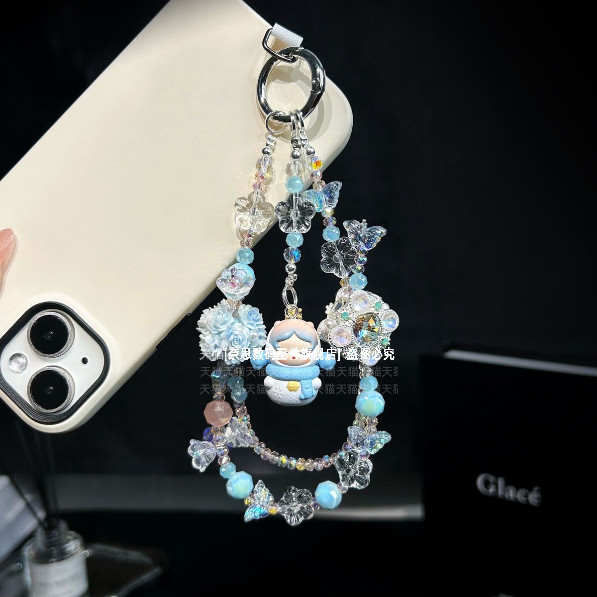 泡泡玛特正版 壳 手机链清新白蓝色挂链手腕创意礼物包包挂饰可爱sp雪天使汽车钥匙扣挂件防丢手链高级夏天新款