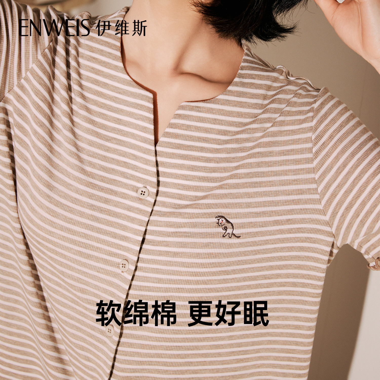 长裤 秋冬可外穿短袖 伊维斯条纹睡衣套装 家居服套装 条纹睡衣