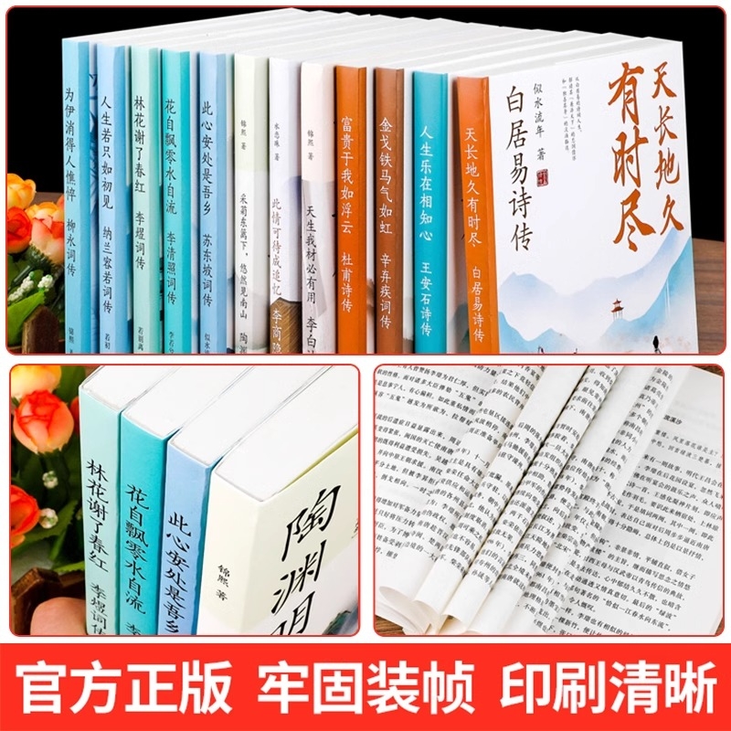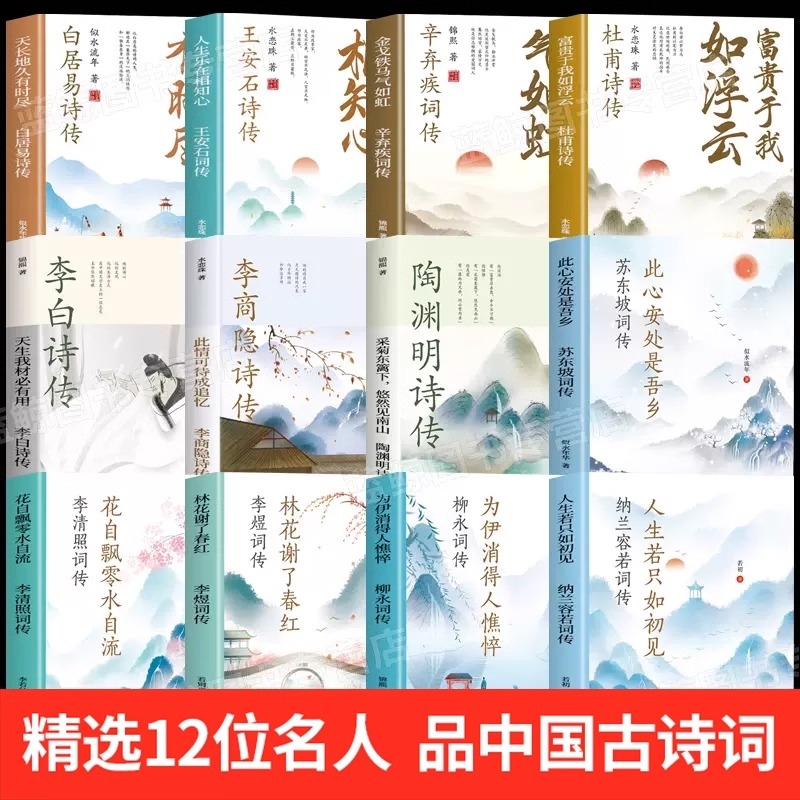 中国诗词传全套12册白居易李白杜甫王安石李商隐陶渊明李煜柳永苏东坡李清照辛弃疾纳兰容若古诗词正版 全集唐诗宋词诗词话人生