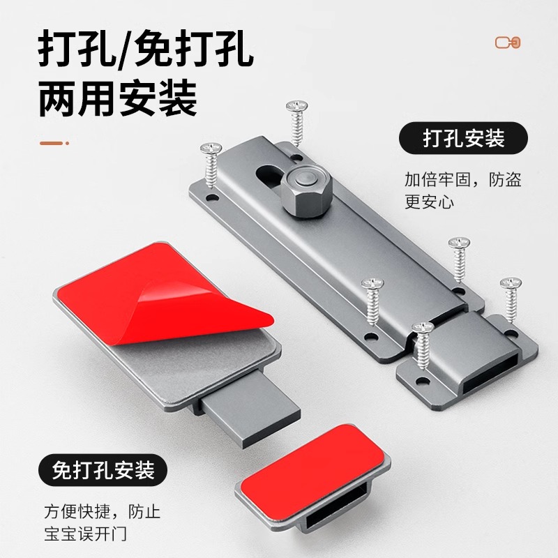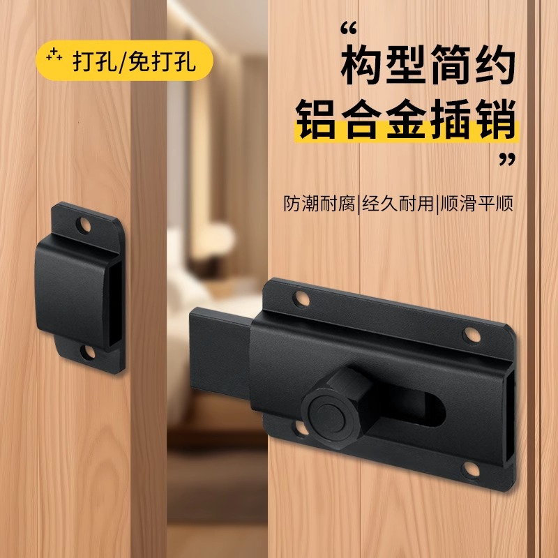 木门锁 门扣防盗老式 免打孔插销锁粘贴式 室内反锁门栓房间门闩明装