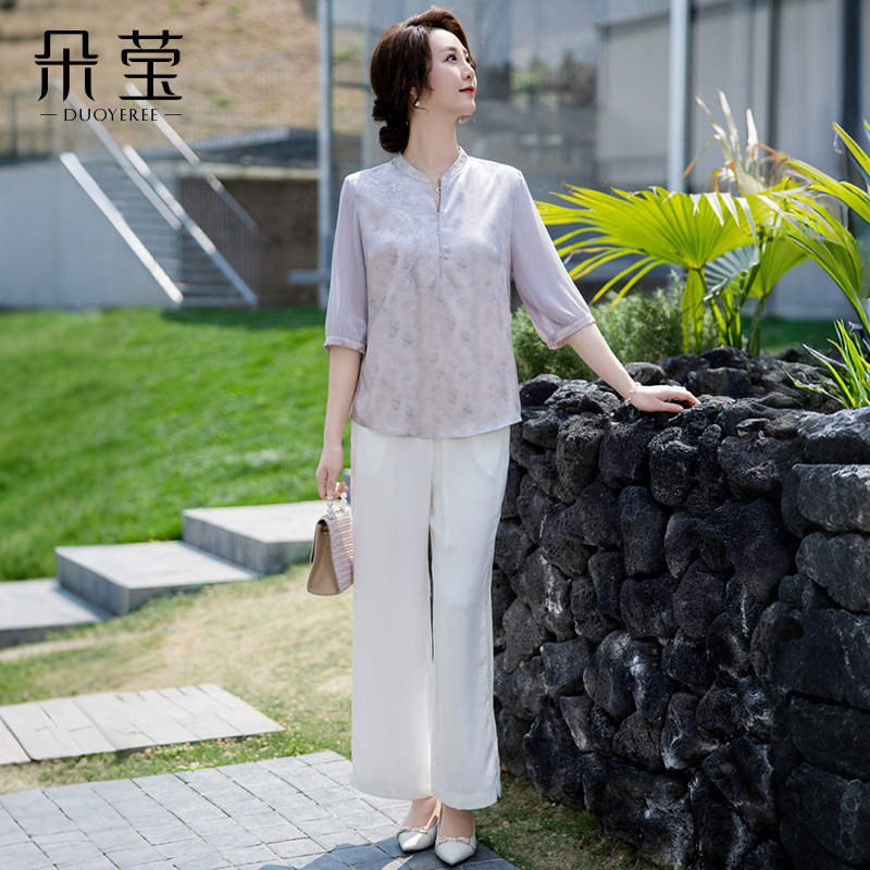 妈妈夏装 套装 雪纺衬衫 T恤上衣中老年中袖 中年女短袖 2025年新款