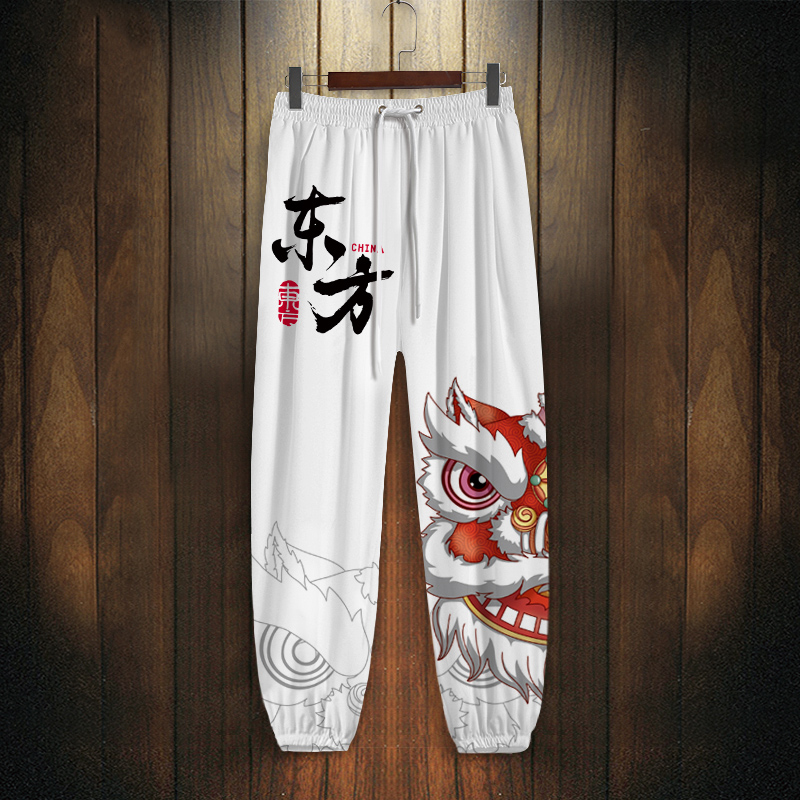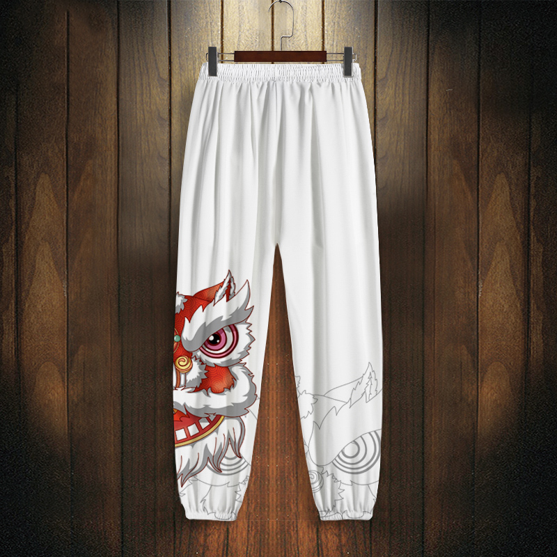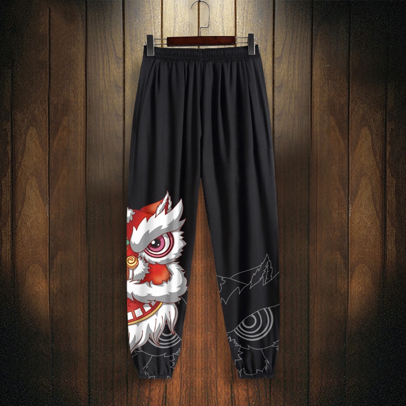 醒狮印花休闲运动哈伦裤 潮流大码 男士 国潮九分裤 宽松百搭 小脚长裤