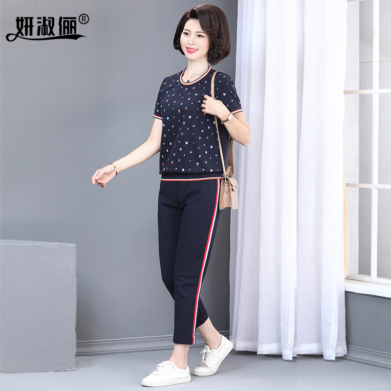 中老年衣服短袖 妈妈夏装 新款 时尚 洋气质品牌宽松两件套女 运动套装