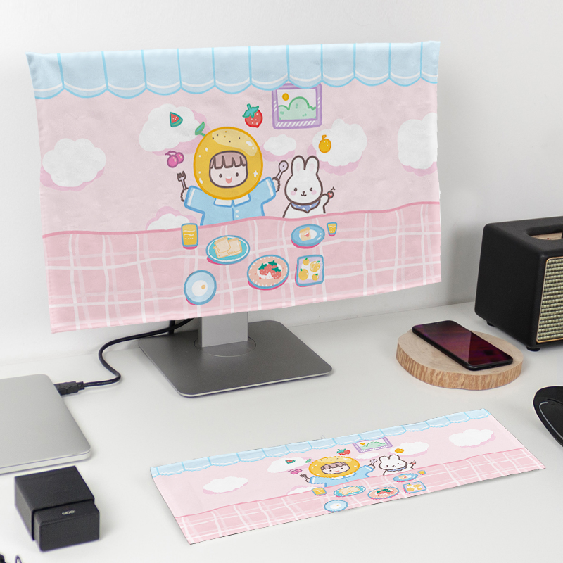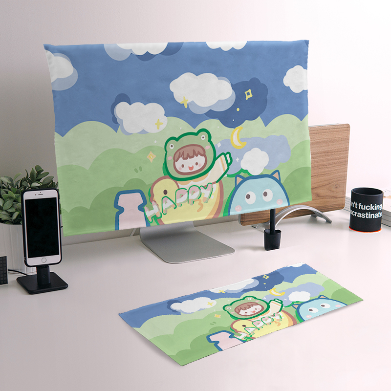 可爱台式 饰防尘布 电脑防尘罩一体机主机盖布键盘盖巾保护显示器装