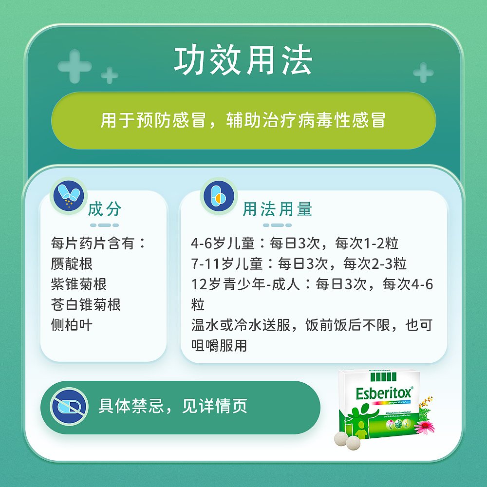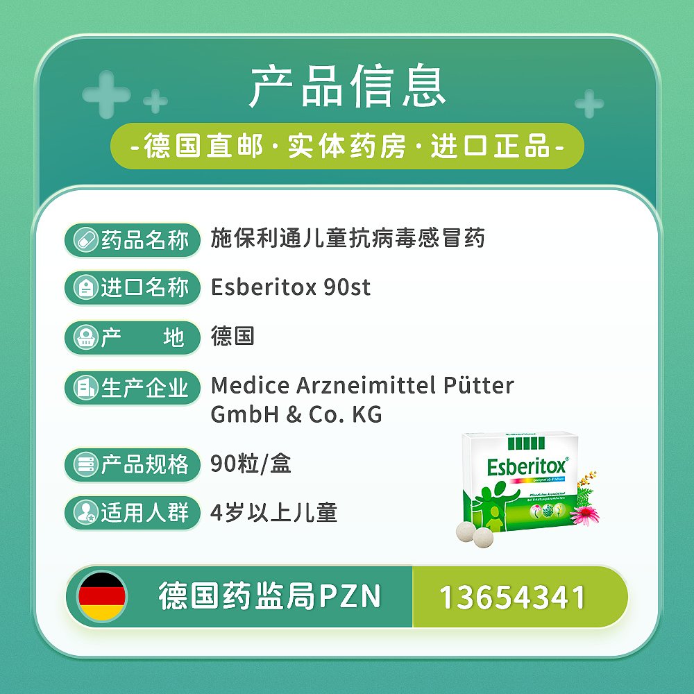 欧洲直邮德国药房Esberitox施保利通儿童感冒药90粒抗病毒流感