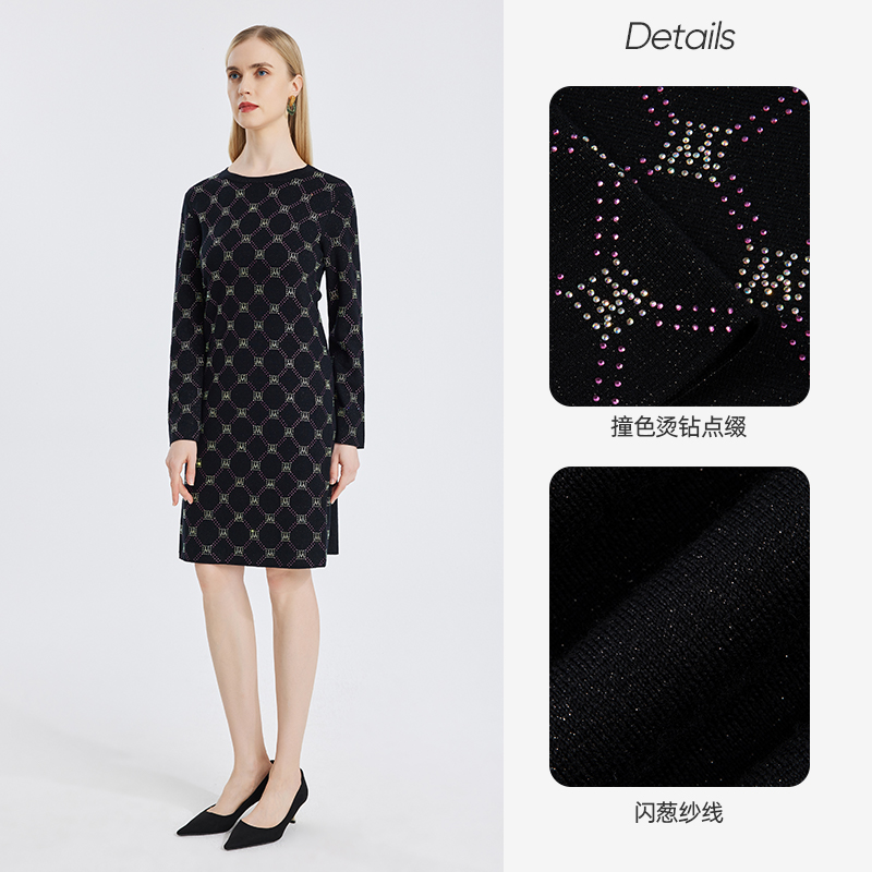 时尚 秋季 气质百搭针织拼接百褶连衣裙女 ONLY奥莱