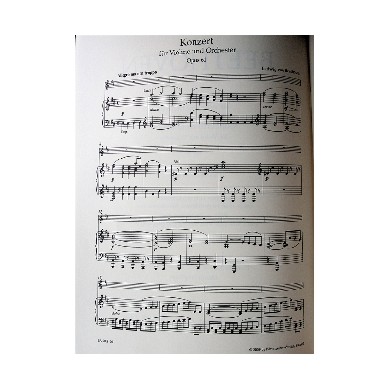 贝多芬 为小提琴和管弦乐而作 BA901990 Op.61 D大调协奏曲