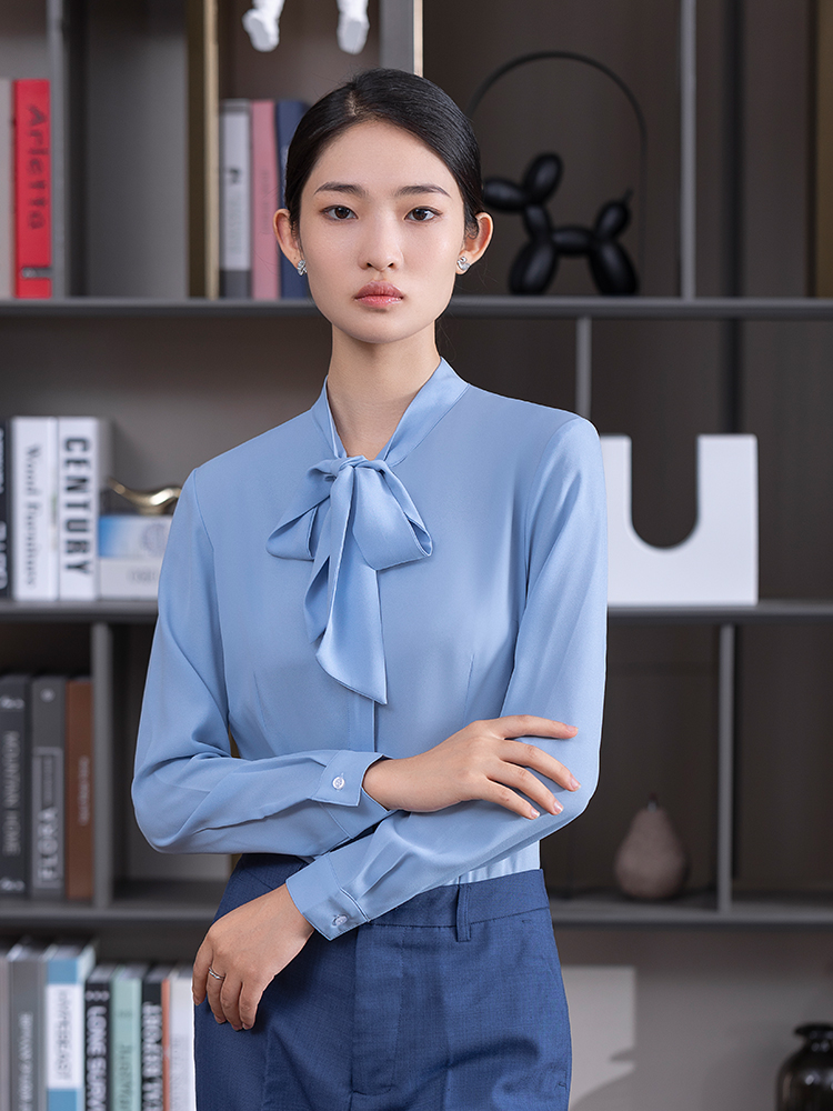 衬衫 蓝色白衬衣法式 女小衫 新款 气质高级上衣 2025秋装 秋水伊人长袖