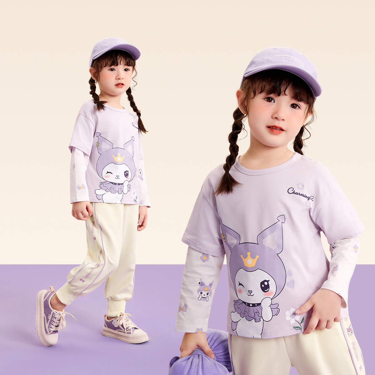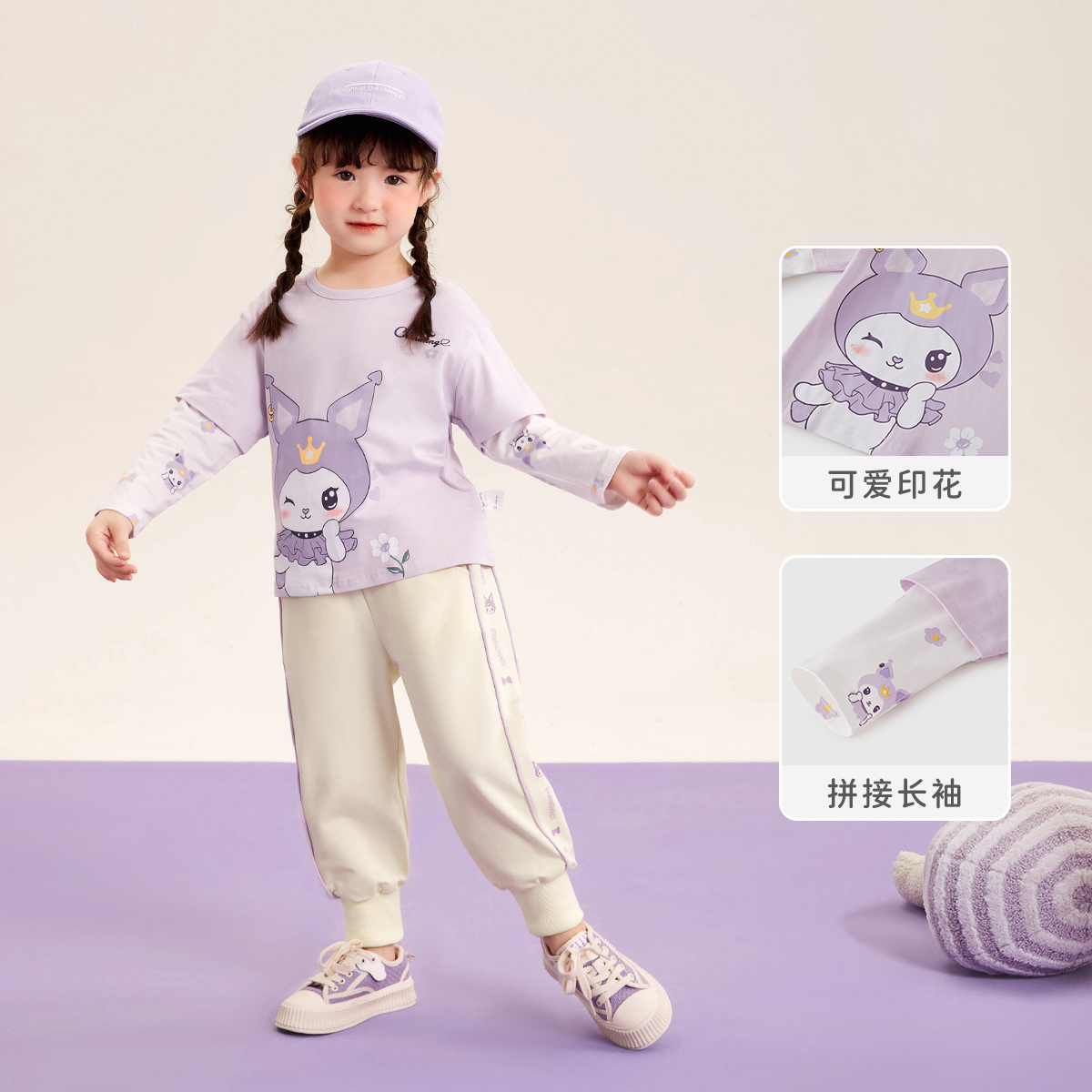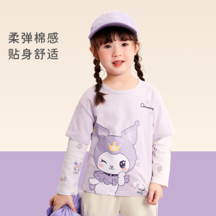 洋气2 女童打底衫 儿童女宝上衣童装 假两件长袖 3岁宝宝t恤 小童秋季
