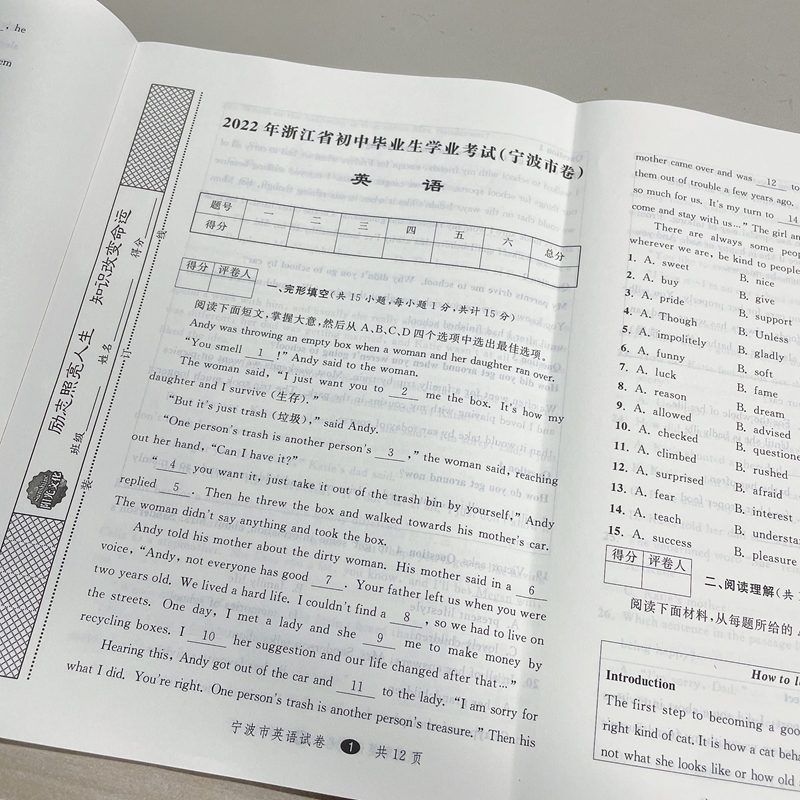中考复习资料初三九年级总复习辅导浙江省各地中考真题卷宁波出版 2023中考必备 英语 浙江省中考试卷汇编 社 2022中考利剑
