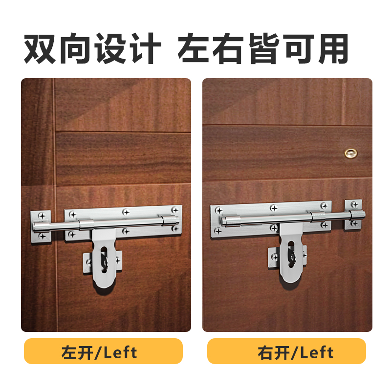 插销门栓门扣大门304不锈钢免打孔木门锁老式 锁扣双开门防火门销