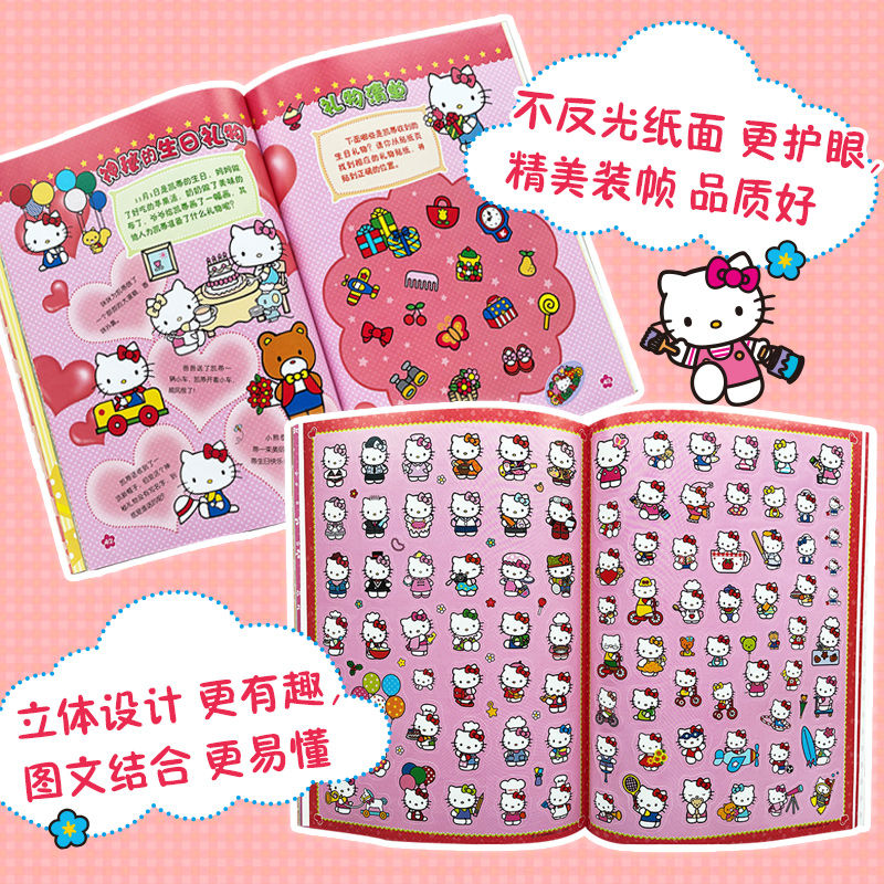 kitty大图鉴书果冻3d立体泡泡粘贴画女孩diy钻石宝石闪亮卡通贴贴纸 三丽鸥哈喽hello 凯蒂猫 美妙生活甜蜜世界1000个贴纸全收藏