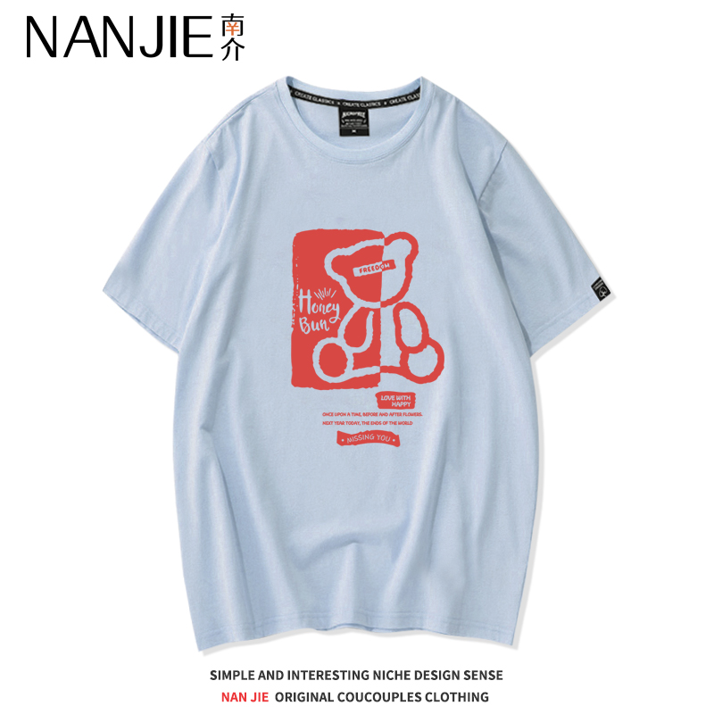 短袖 上衣ins纯棉半袖 T恤男女2023新款 小众潮牌美式 潮流夏季 情侣装