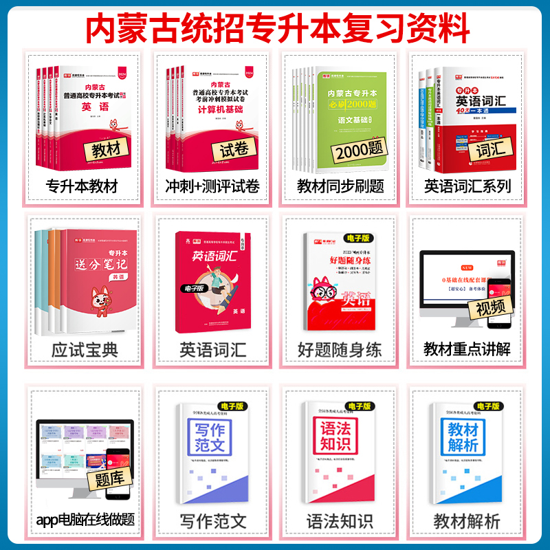 库课2026内蒙古专升本复习资料教材历年真题冲刺试卷英语政治计算机语文信息技术医学艺术化学必刷题练习题英语词汇语法书视频网课