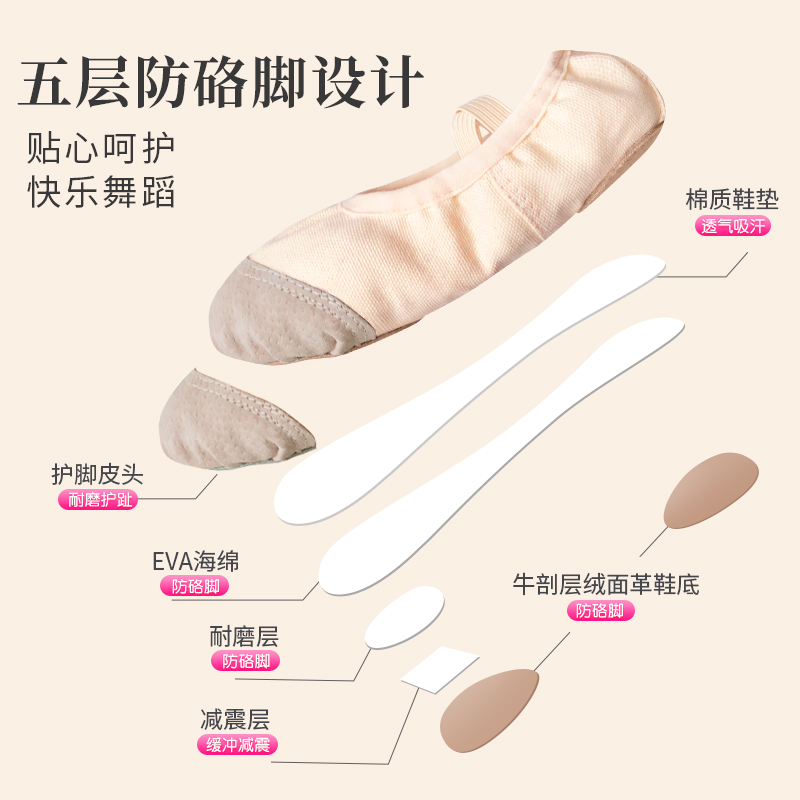 芭蕾舞鞋 中国舞跳舞鞋 女软底儿童舞蹈专用红色免系带白色鞋 舞蹈鞋