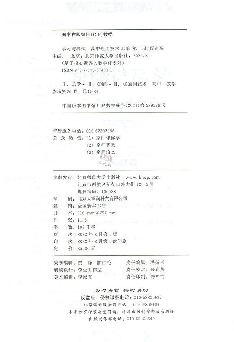 教学评系列 基于核心素养 大单元 设计学习任务群设计 社 学习与测试 北京师范大学出版 高中通用技术必修第二册