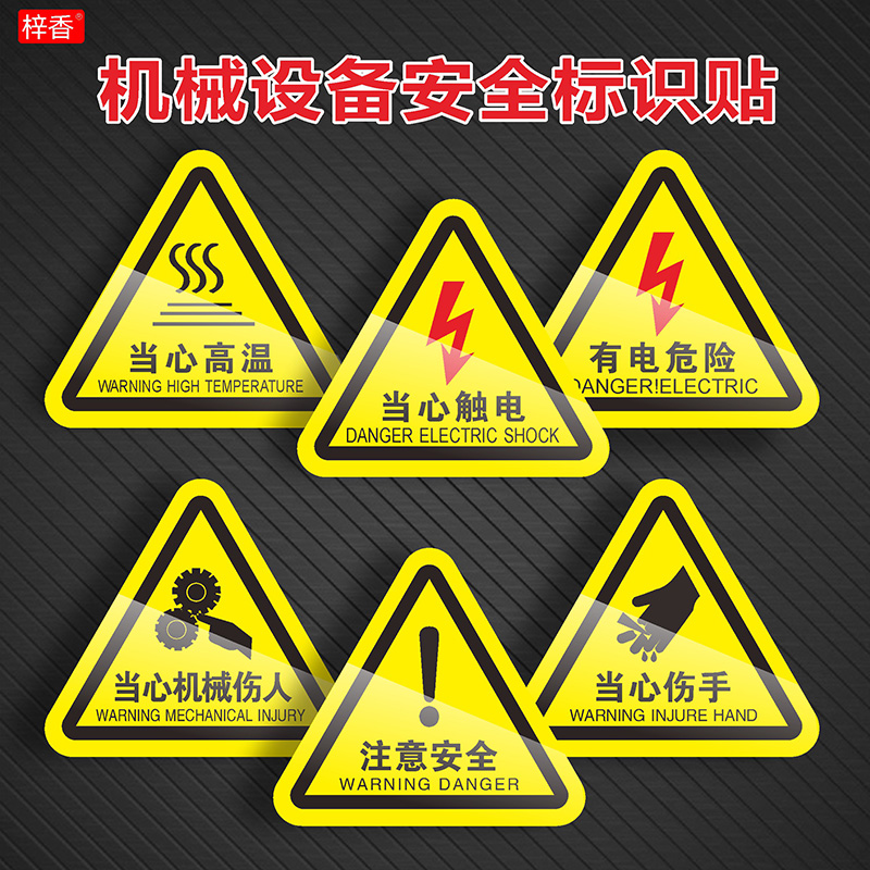 有电危险当心触电机械伤人高温夹手伤手注意安全标识牌一般固体废物医疗三角警示牌电箱电力闪电提示小心警告