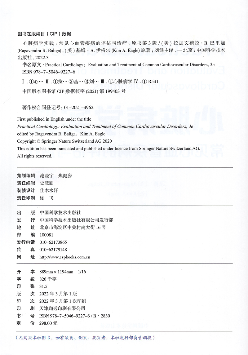 评估与治疗 原书第3版 刘健 现货正版 中国科学技术出版 常见心血管疾病 主译 社9787504692276 心脏病学实践