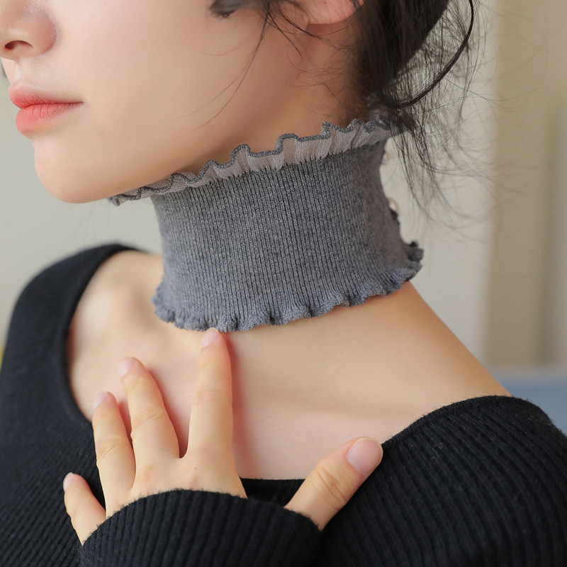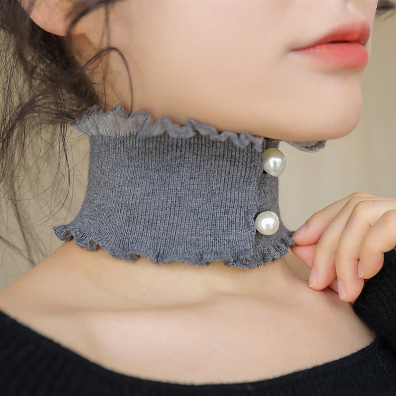 饰 保暖假领子女百搭针织花边领围脖立领珍珠扣衣领装 秋冬新款 韩版