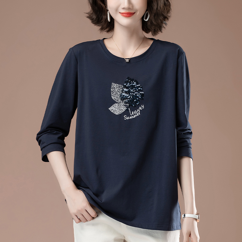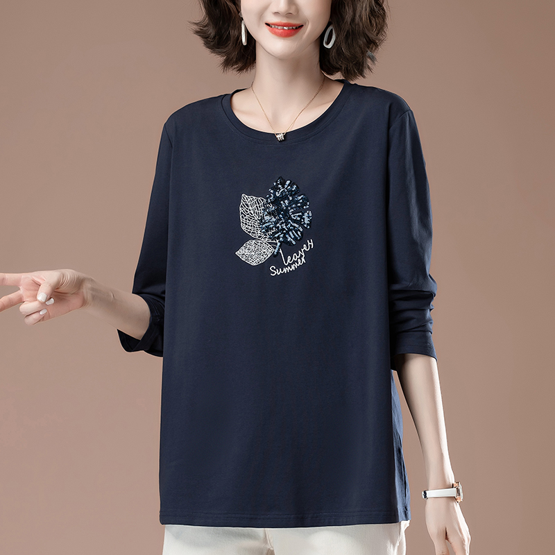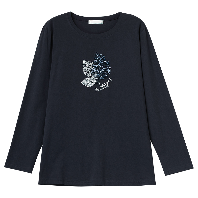 纯棉弹力显瘦 内搭秋冬款 全棉时代女士T恤女针织长袖 上衣打底衫