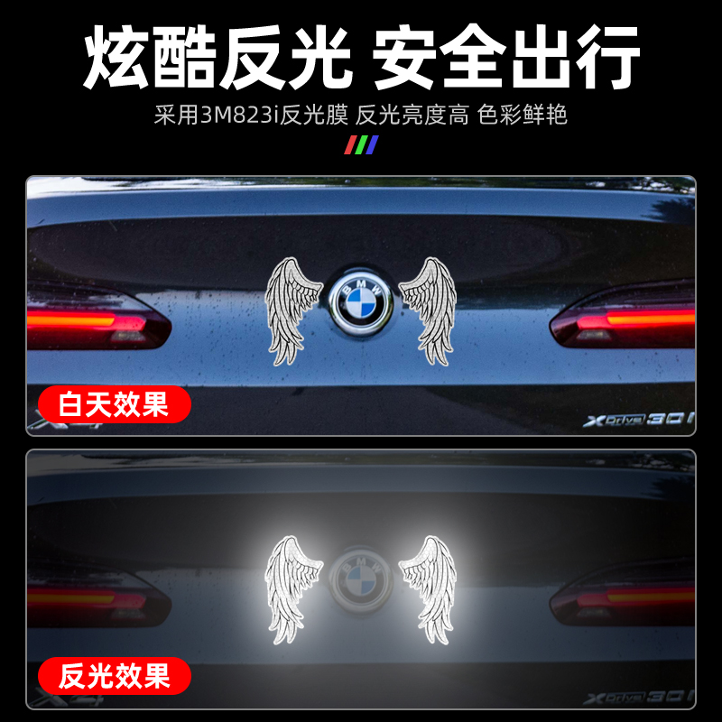 3M汽车标志反光贴纸天使翼装 创意车身改造防水防晒划痕贴纸 饰个性