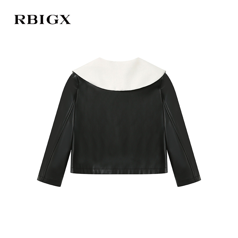 太平鸟黑色正肩仿蛋白PU皮衣外套女2025款 高级感翻领夹克女