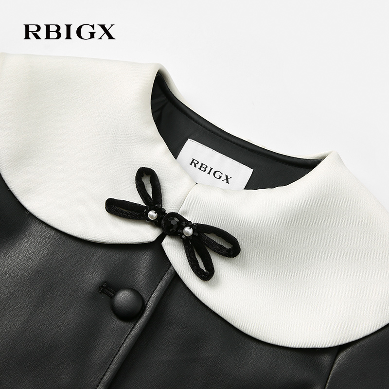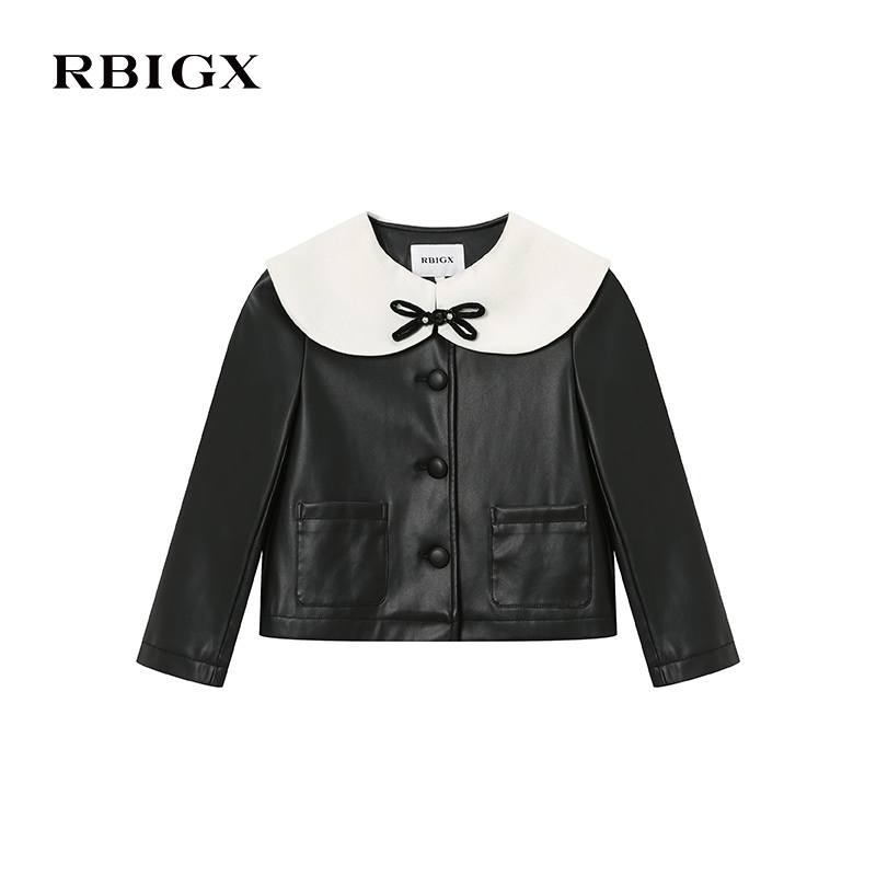 复古宽松翻领黑色外套女装 时尚 846474 秋季 三福皮衣夹克2025新款