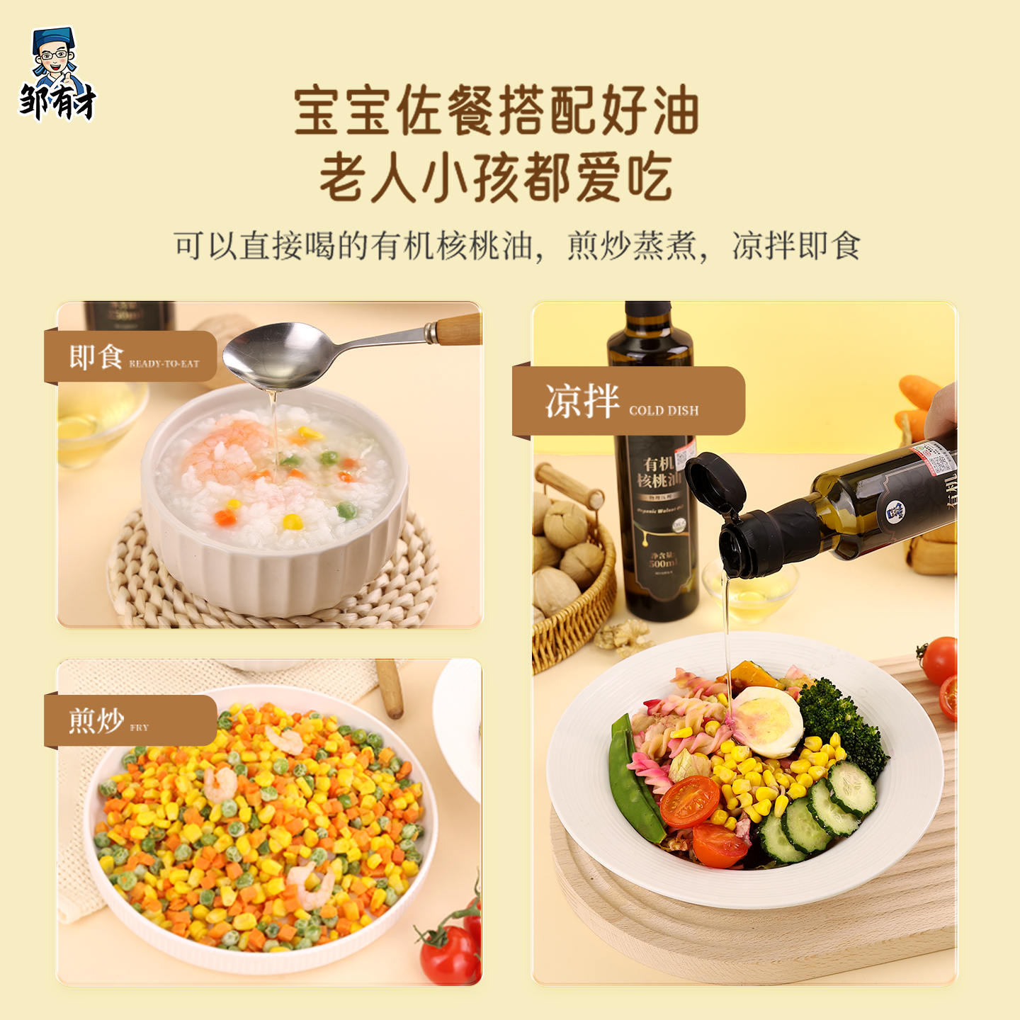有机初榨纯山核桃油110ml一级亚麻籽油儿童食用油凉拌热炒油即食