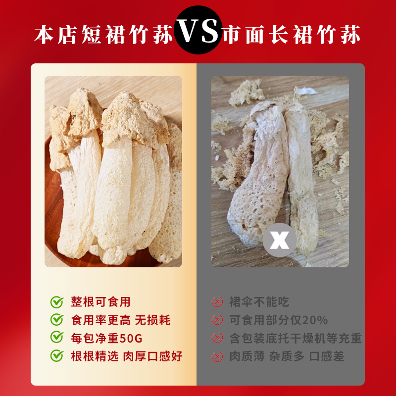 净重竹荪干货特产 煲汤火锅食材竹生菌新鲜竹笙无硫短裙竹荪 包邮