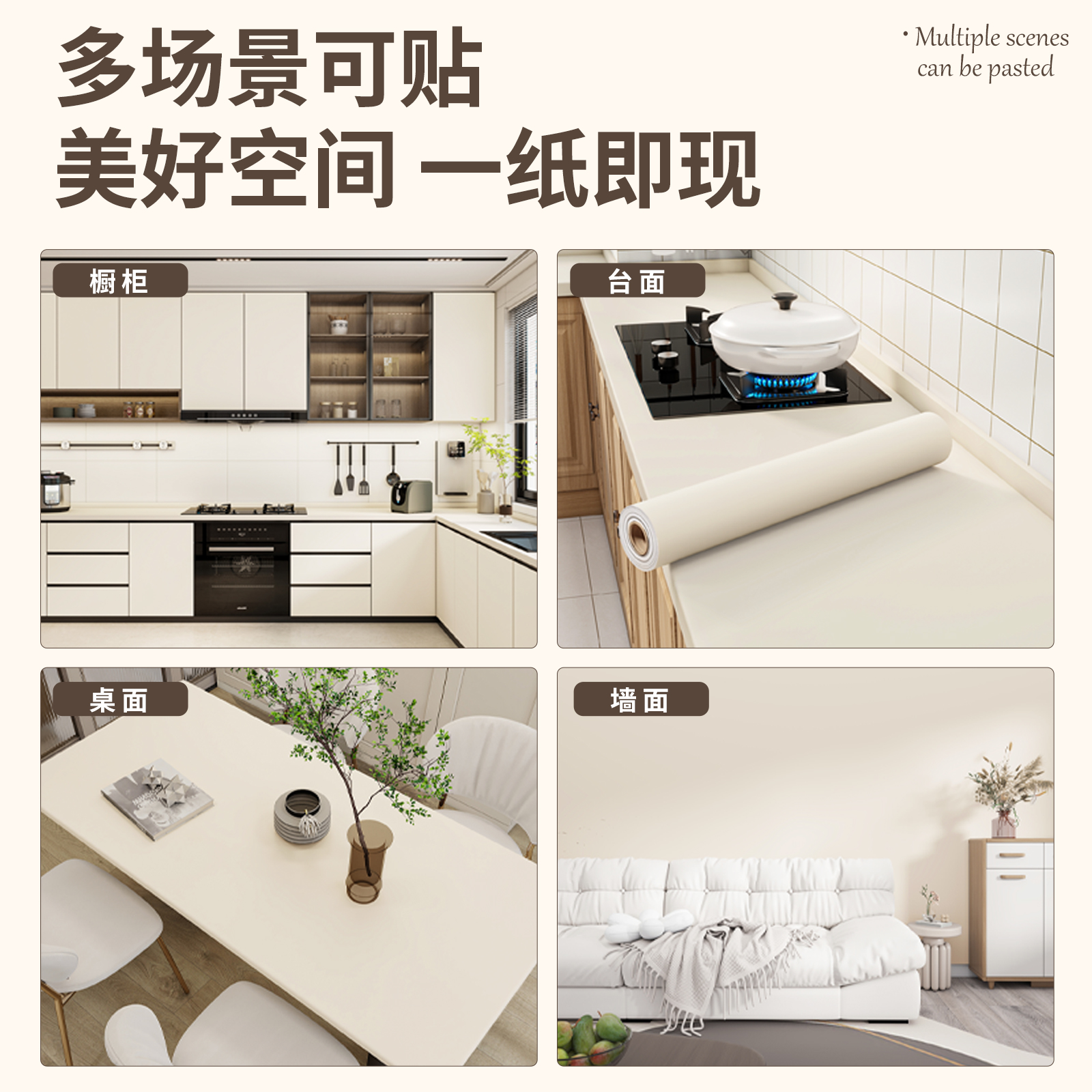 肤感桌面贴纸自粘防水防油防烫桌贴加厚柜子橱柜改色贴膜家具翻新